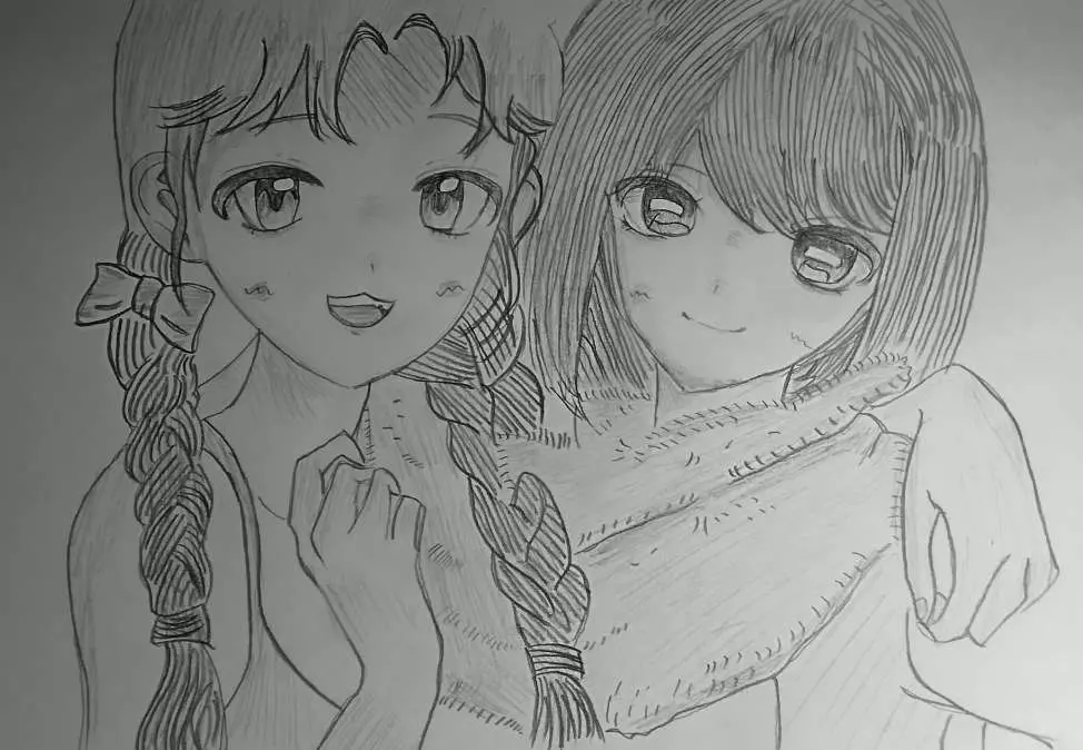 突然来灵感了!!!但是懒得画做了一半,我不行了,临摹的是光死夏亲妈モクモクれん画的两小只。