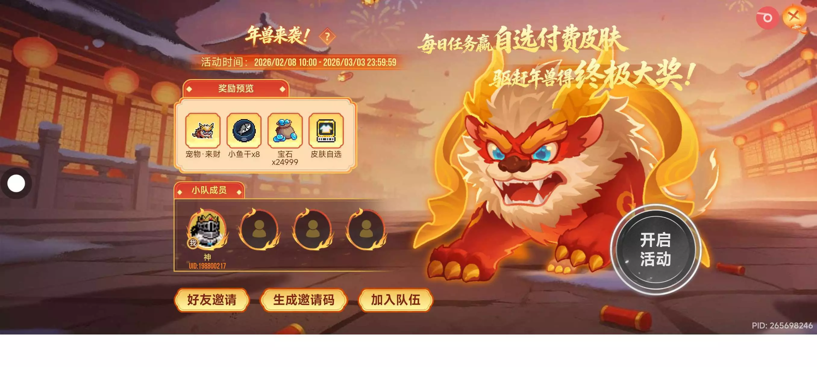 全服合力打年兽,队伍ID: NBf2DY2W0cx6bw!这年兽血条有点长,请求支援!