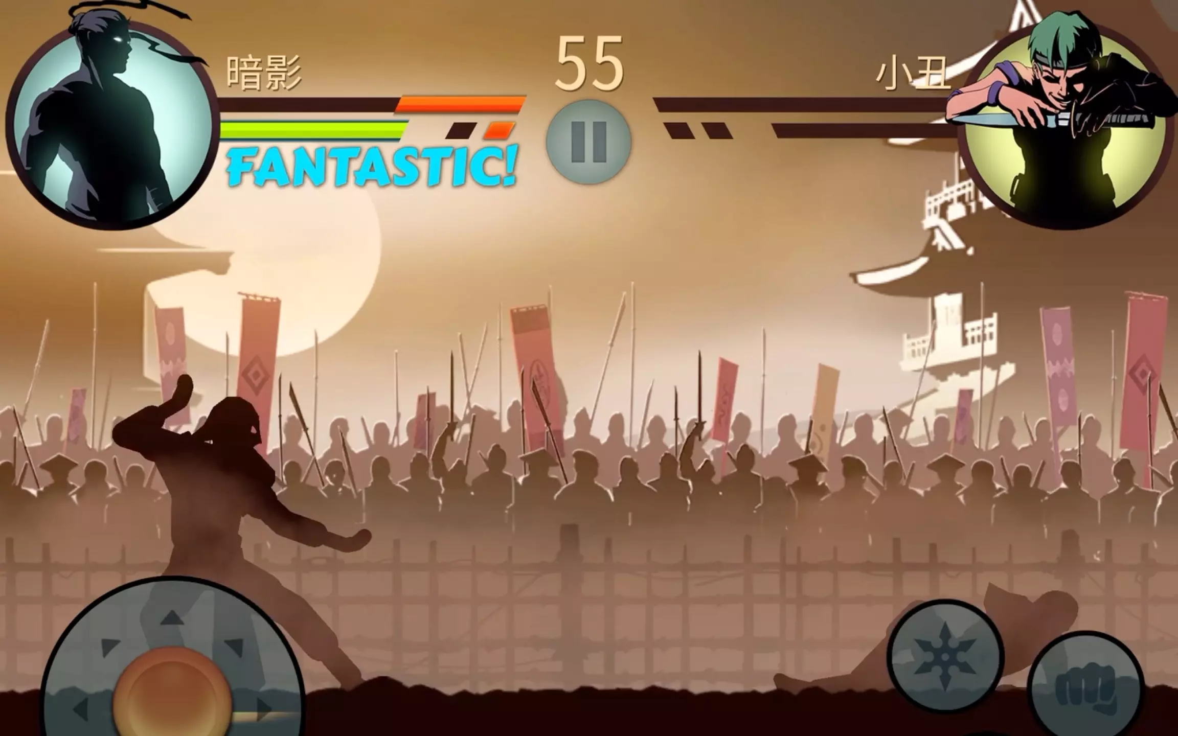 这是《暗影格斗2》的游戏教程攻略,展示了对战第一章BOSS魔术师的相关内容,战胜他可获得第一章武器双截棍,还呈现了装备升级等游戏界面,助力玩家顺利通关拿取武器。