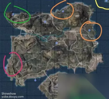 而且经过玩家多次测试,每次的超级空投都必会刷新一把狙击和一把步枪或者机枪,几乎能够让一个人直接满配,因此被大家称为超级空投或者“双黄蛋”。 那么,这样一个“神级武器”,它的刷新点在什么地方呢?经过玩家的不断探索,基本锁定了几个信号枪的刷新点 图中蓝色点就是玩家亲测信号枪的刷新位置,而被圈起来的几个蓝点则是刷新几率相对较高的几个点。