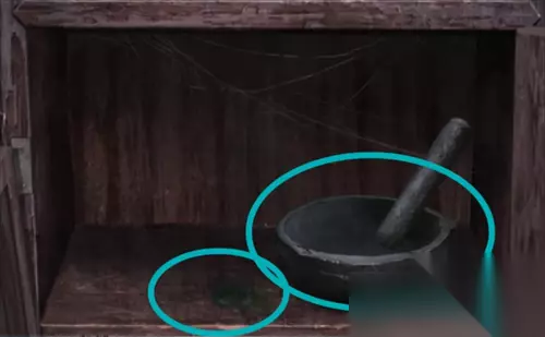 去到本场景的厨房柜子上 ,将被烤焦的鸟骨头,放进研磨碗里得到鸟骨头粉末。用刮刀在同场景研磨碗旁边绿色的地方刮下霉菌。