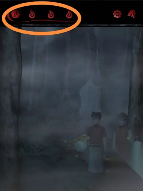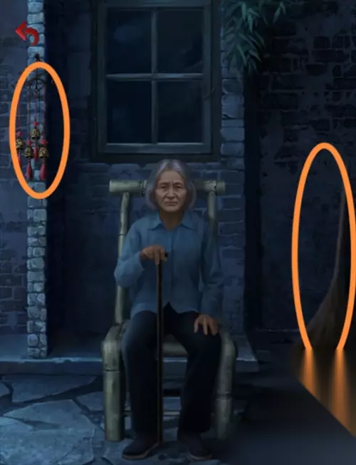 进入长藤村,跟右面阿婆对话,拿取旁边的扫帚,点击左上的铃铛,可以看到上面的图案,需要回到墓碑处(退出铃铛场景又是一个小高能)。