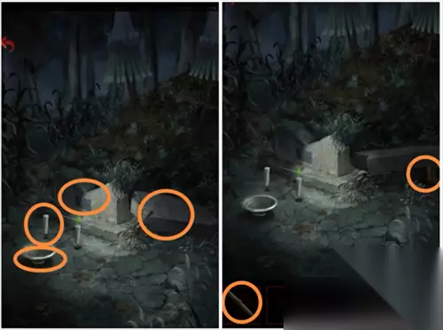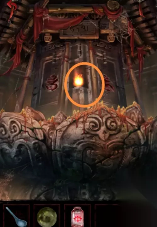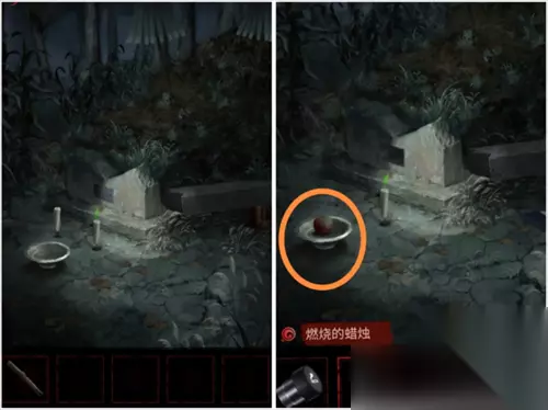 回到墓碑,将苹果放入供盘中,得到燃烧的蜡烛。