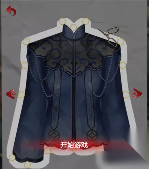 用剪子去剪桌子上的样衣图,做小游戏,用左右箭头来控制剪刀✂上下开口方向,沿着白边移动到每个黄色点位,即可成功,若是剪刀移动出边缘外即算失败(这个小游戏怎么说呢,可跳过[表情_捂脸哭]),获得纸寿衣。