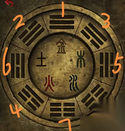 根据金木水火土所有八卦盘的显示卦位,来到正中间的房间,点击门口的八卦锁。