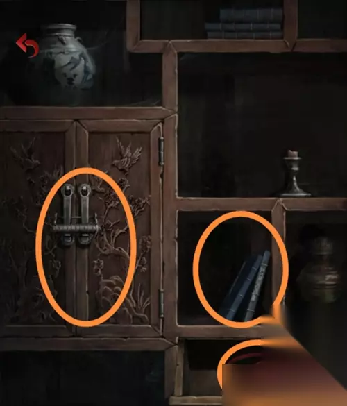 在初始场景屋中左侧的柜子上拿取八卦盘和一本风水秘术的书,抽屉里还有一个锤子。