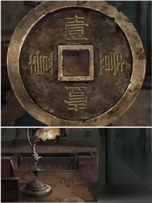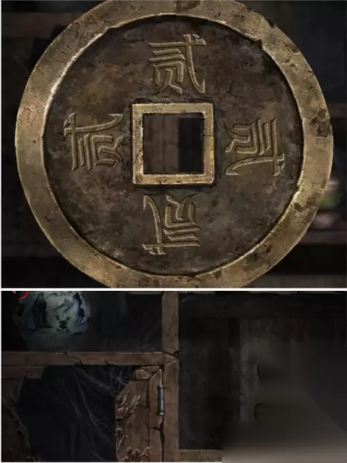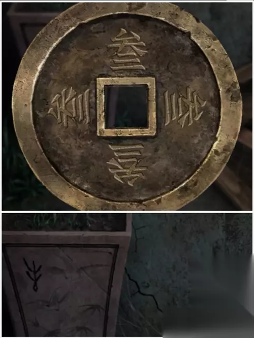 秋枯场景病人房间左侧柜子里符号,用铜钱显示是贰