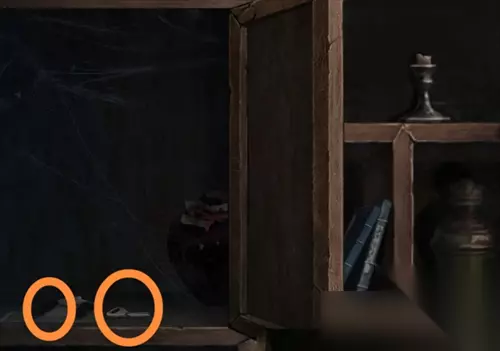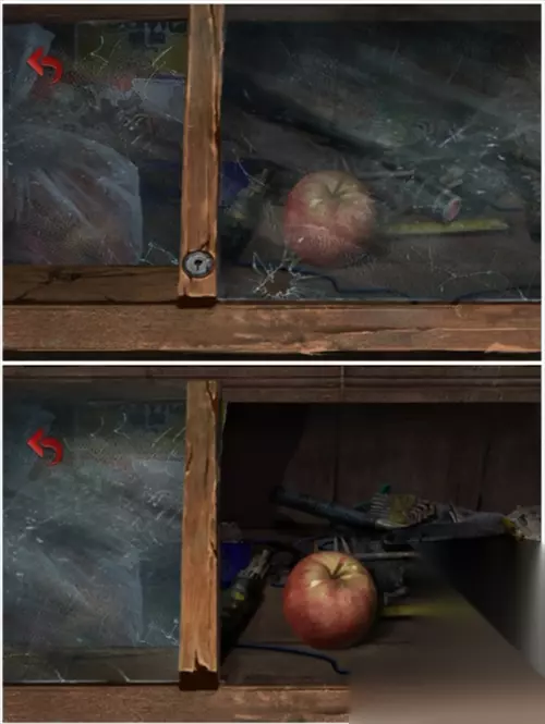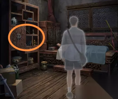 去到另一个场景墙壁位置,点击柜子,柜子凹进去得到照片碎片2。
