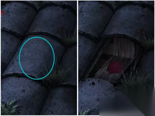 用梯子上屋顶,用锤子去锤中间的瓦片,得到老鼠药。