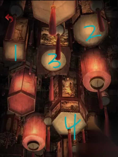 柜子需要密码,春夏秋冬去看墙上挂的四幅画。春里面是6只鸭子,夏里面是4只蜻蜓,秋里面是七只燕子,冬里面是一个人,所以密码是6471,打开柜子得到花灯。