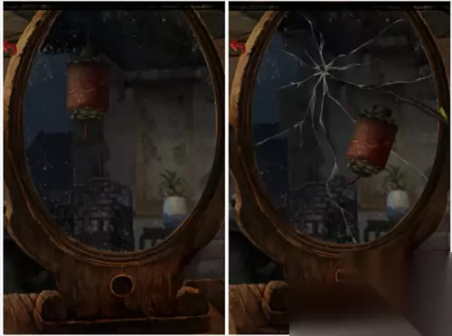 用桃枝去碰镜子,获得桃枝花灯。