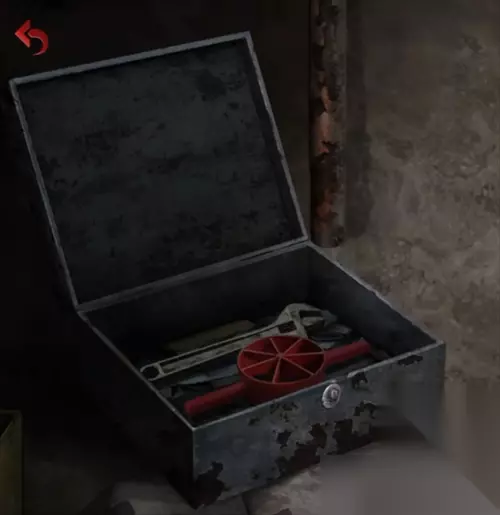 用钥匙打开地上上锁的箱子,得到圆型工具和扳手。