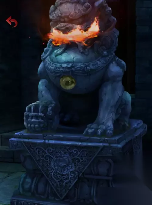 用止火符将周府门口右边嘴中着火的石狮子的火消掉,得到黄珠子和狮嘴中的红色容器。