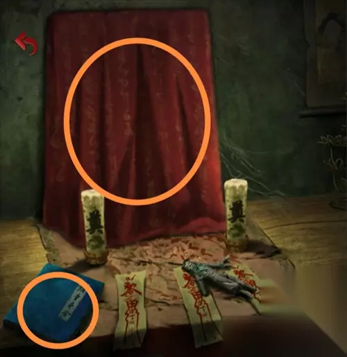 进入房间,有小高能。把皮球给纸童,获得钥匙。来到正中间的台子,拿掉镜子上的红布。桌子上还有本阴童夺舍的书,根据书中的提示,需要红布和一枚蛋。