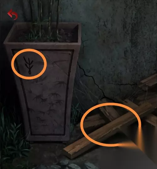 进入大厅,拿取司南上的勺子,把左面屏幕上的图案移动到正确的位置,等待开花拿到桃枝(下图中开花瓶子上的图案就是正确的)