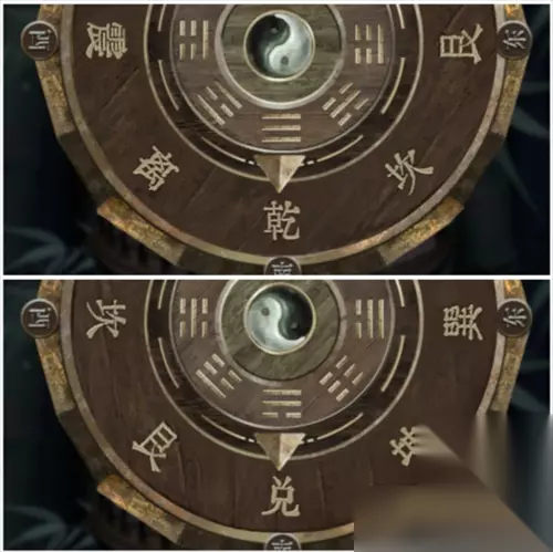 把人头和纸寿衣放在半成品框架上,得到女纸人。 接着根据之前风水秘术的线索,八卦与五行相关,按照金木水火土的顺序,点开八卦盘,分别来到竹子上的鸟笼(金),点鸟笼八卦盘显示干+兑