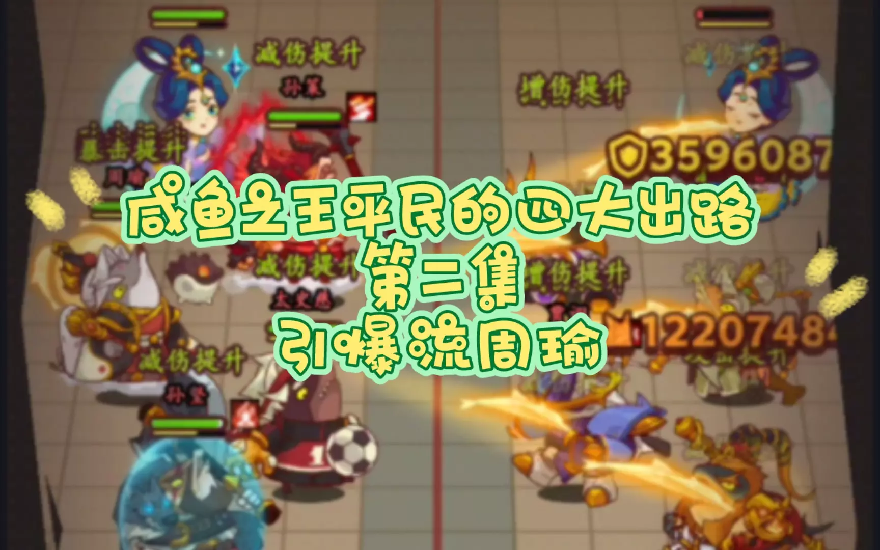 视频为顶氪阵容演示(仅供参考) 平民阵容:华佗一号位带孙策装备破甲鱼,大张角2号位核爆装主C鱼(利刃最佳),贾诩母协力3号位,小张角副c装备破甲鱼4号位,太史慈…