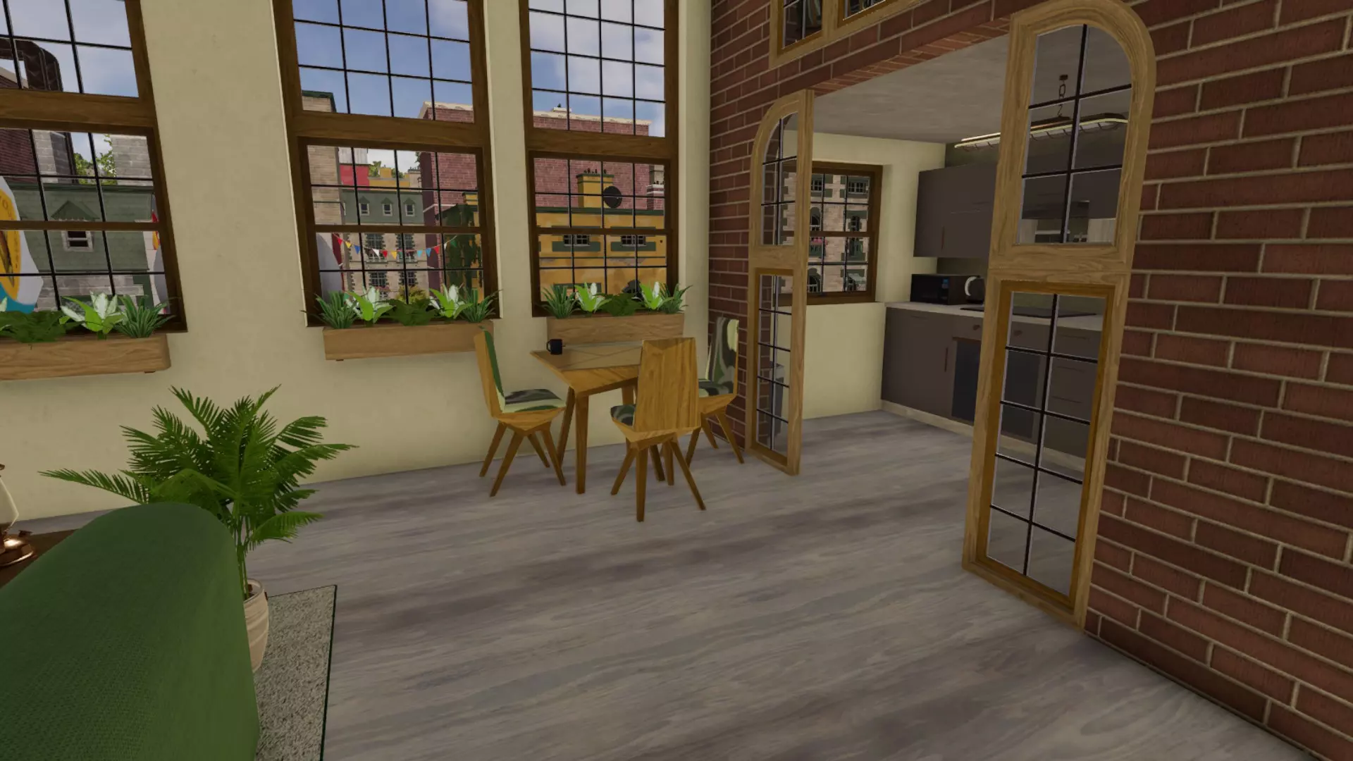 这是模拟经营类游戏中的公寓改造内容,展示新手房东将一间公寓改造成可容纳8人的群租房的过程,呈现了户型规划、空间布局及家具布置等群租房改造细节。