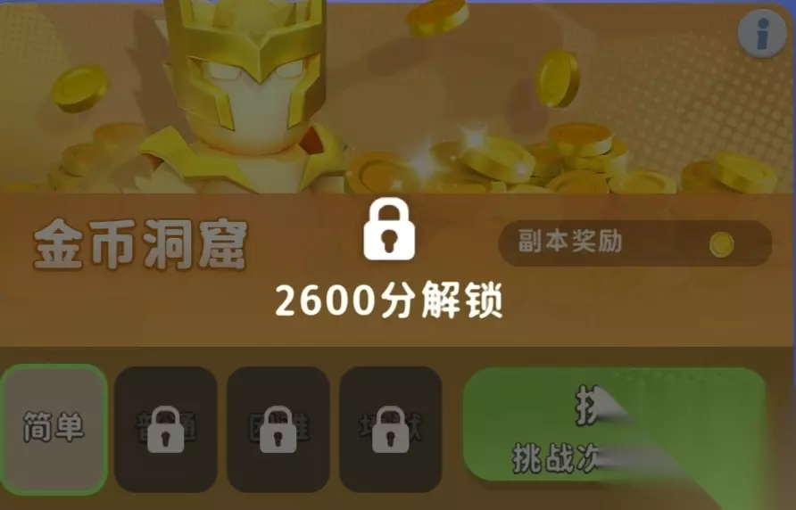 2000分解锁,初始160币,角色在攻击矿的时候会掉血,用僵尸比较容易打,治愈精灵效果并不好 角色提升天赋的主要晶石来源,难度越高掉金的概率越高。 目前我知道的是用僵尸打特别容易,也就是进去只随机摇僵尸,其他角色都划到左右下角卖掉。 5.金币洞窟