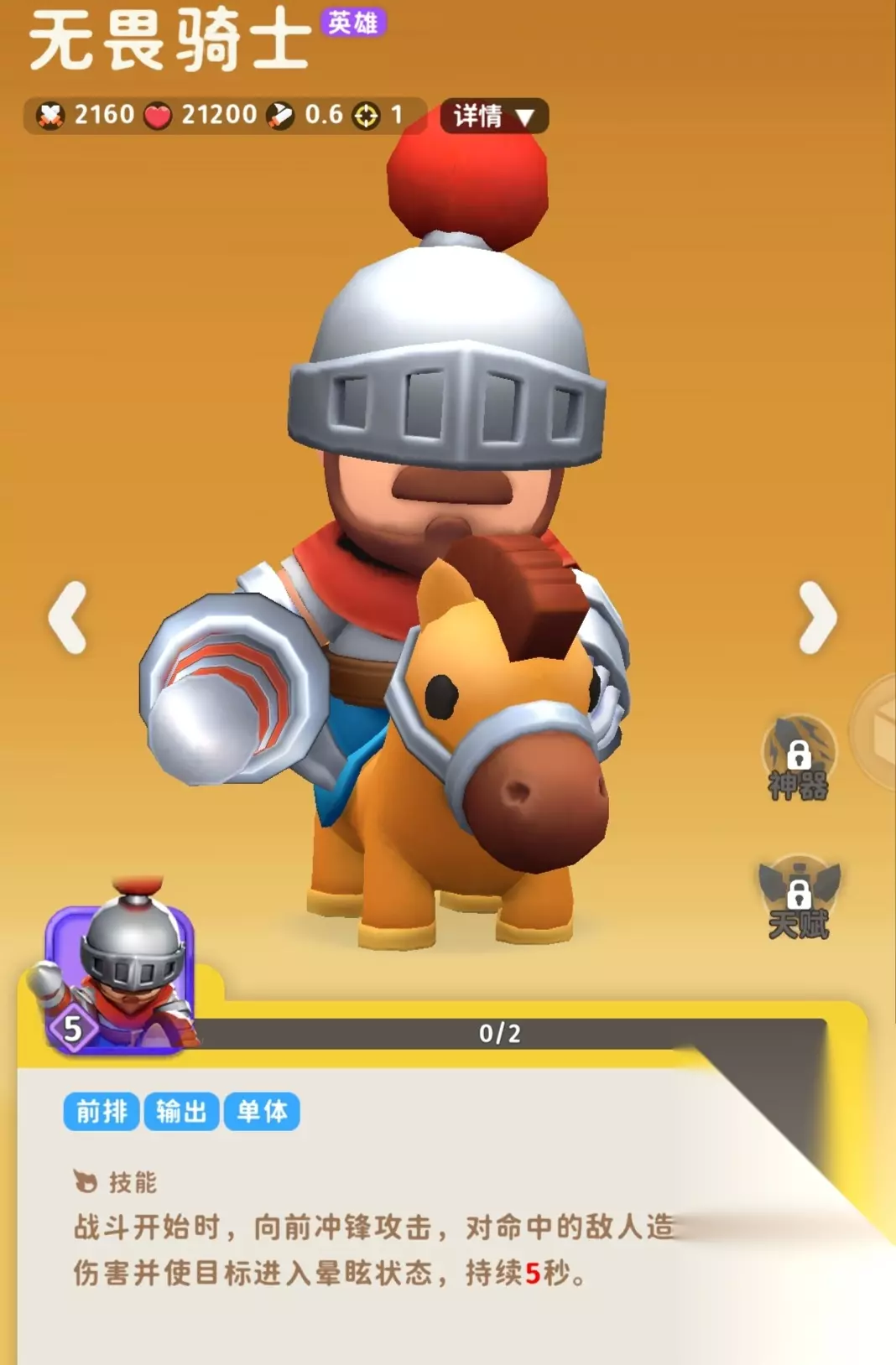 强度很不错,天赋高了还可以贯穿后面俩个敌人,还有眩晕 很高的冲刺伤害,后续的平A伤害也不错,可以用来处理一些后排角色,以及一些高输出角色,适合开局增加伤害的buff。 注意点: 1.需要一定运气来对位敌人,不然容易空枪,有时候可以利用这点去绕后。 2.特别害怕尖刺卫士,千万别他对位,因为尖刺开局反伤盾足够秒了骑士。