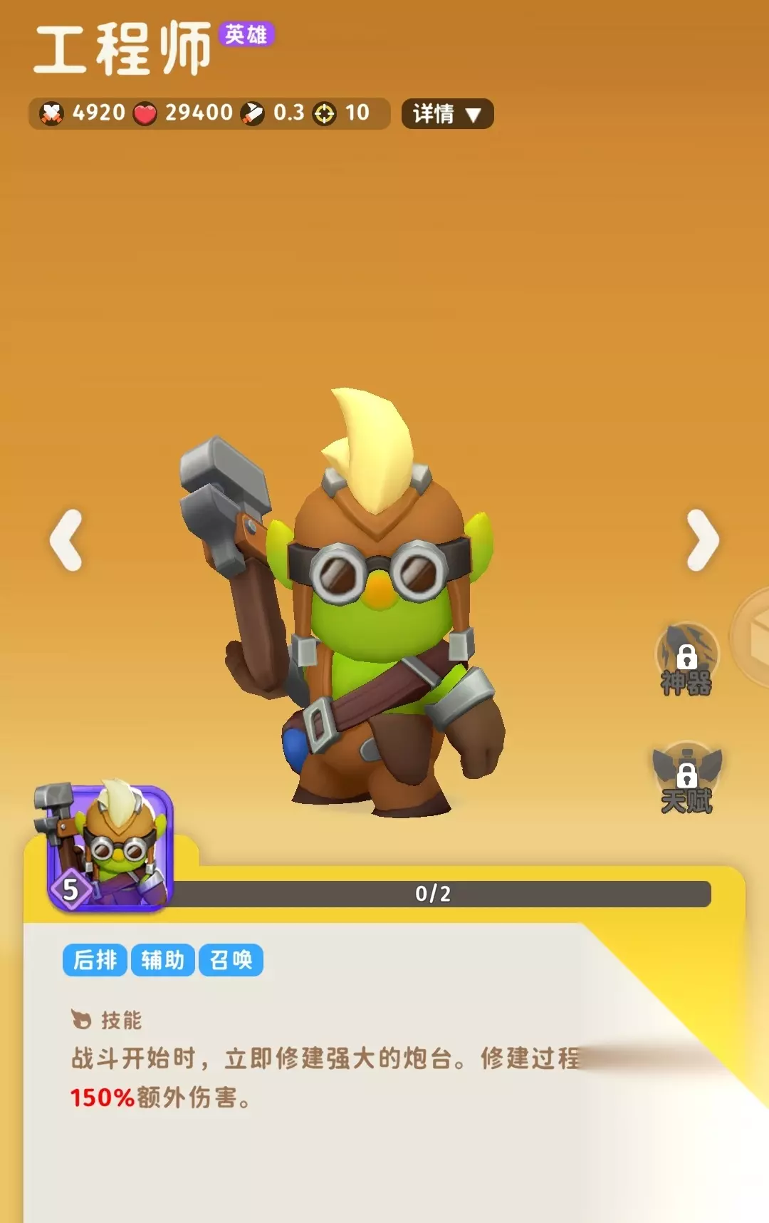 也是不尽早处理掉就会造成破坏的角色,炮台伤害不错,适合放在最后一排争取时间,适合五排加攻速的buff 蓝色角色