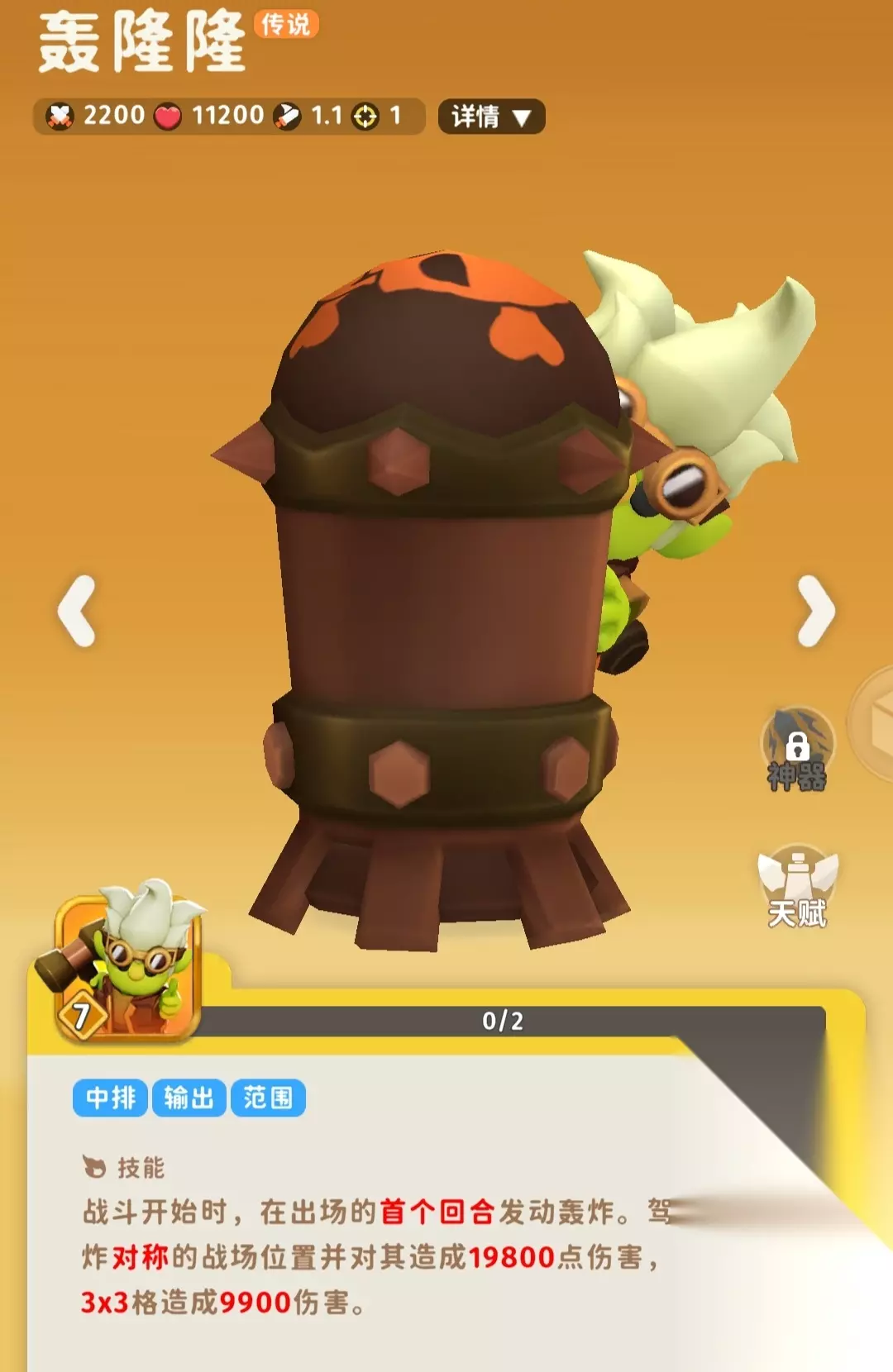每周挑战的大杀器,因为每周挑战里面的敌人是固定位置,如果你刷出来轰隆隆可以直接对称摆。