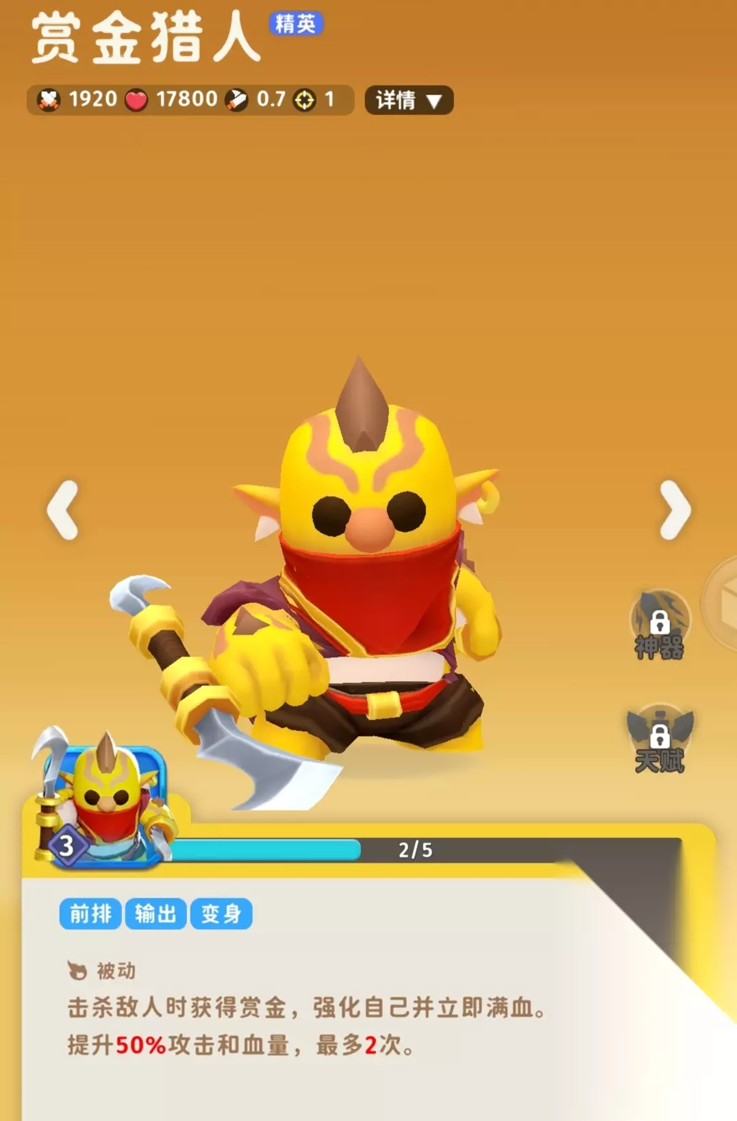 6元首冲角色,纯虐菜角色,难一点的局他打不了一点,如果不打算多氪的话氪一个也不错,因为人机局多 其他金卡,我知道死神强度高,复活天使好用,只能说每个金卡强度都不错,但都需要重复抽去提升天赋以及神器等级,各有千秋。 五、部分局内buff介绍
