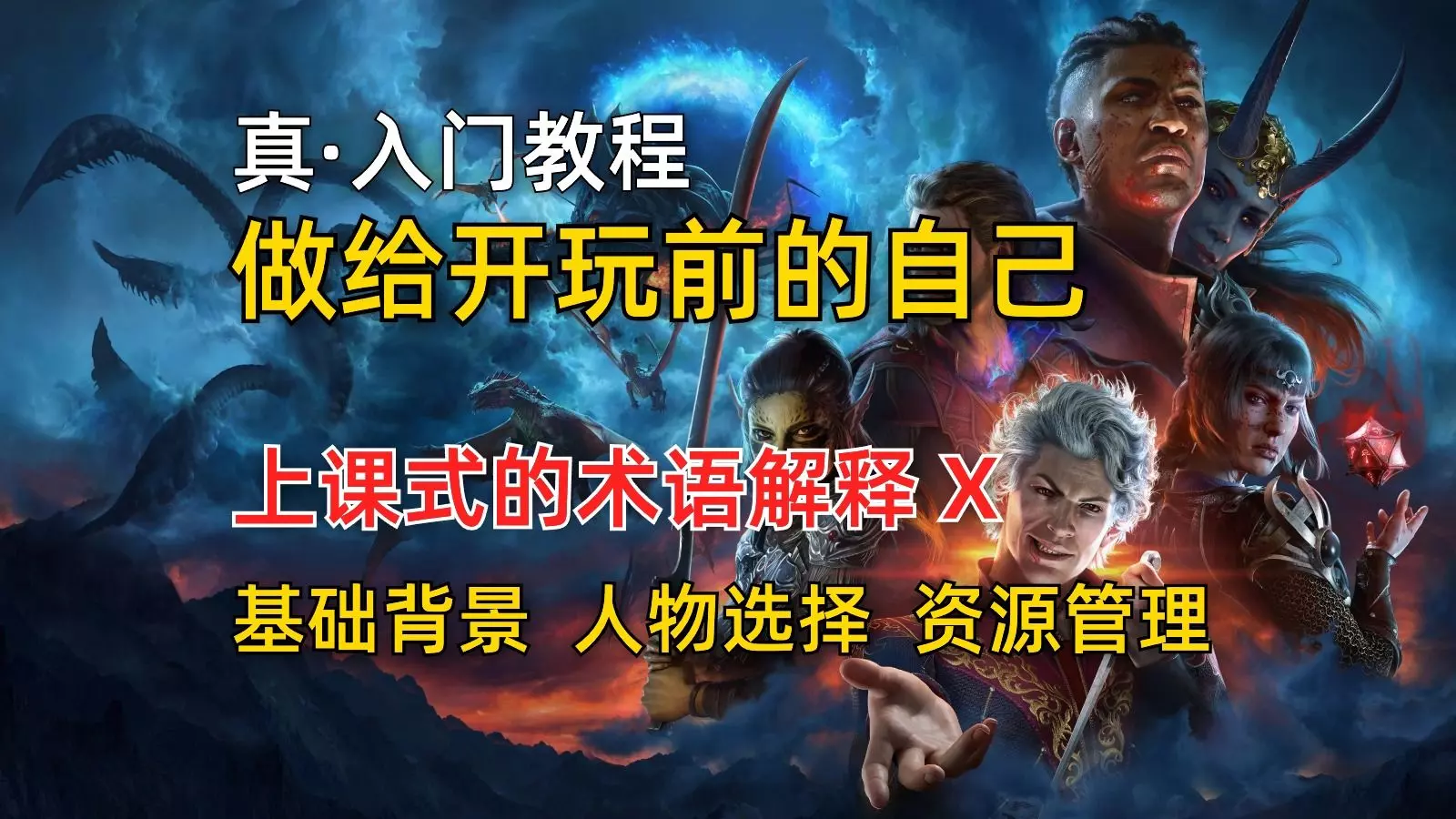 本视频主打的就是一个阶段了解一个阶段的事情,讲解会逐步深入,没到那个阶段就简单粗暴方便理解。欢迎各位大佬评论区补充!让我一边分享一边学习!!! 参考的主要是下面几位up 参考跛腿骑士:【4K】博德之门3最高难度地毯式流程攻略(全剧情+全收集) https://www.bilibili.com/video/BV1cN411h7z7?p=1&vd_source=200b19e3dbaf9e90476d2bc1f52d1a79 参考FlowerStudent:博德之门3【第一期】属性加点/攻击检定/豁免检定/属性调整值一网打尽 https://www.bilibili.com/video/BV17G411d7FC/?spm_id_from=333.880.my_history.page.click&vd_source=200b19e3dbaf9e90476d2bc1f52d1a79 参考六月忆风:【博德之门3】职业构筑BD强度排名 T0究竟花落谁家? https://www.bilibili.com/video/BV1m94y1t7rn/?spm_id_from=333.880.my_history.page.click&vd_source=200b19e3dbaf9e90476d2bc1f52d1a79