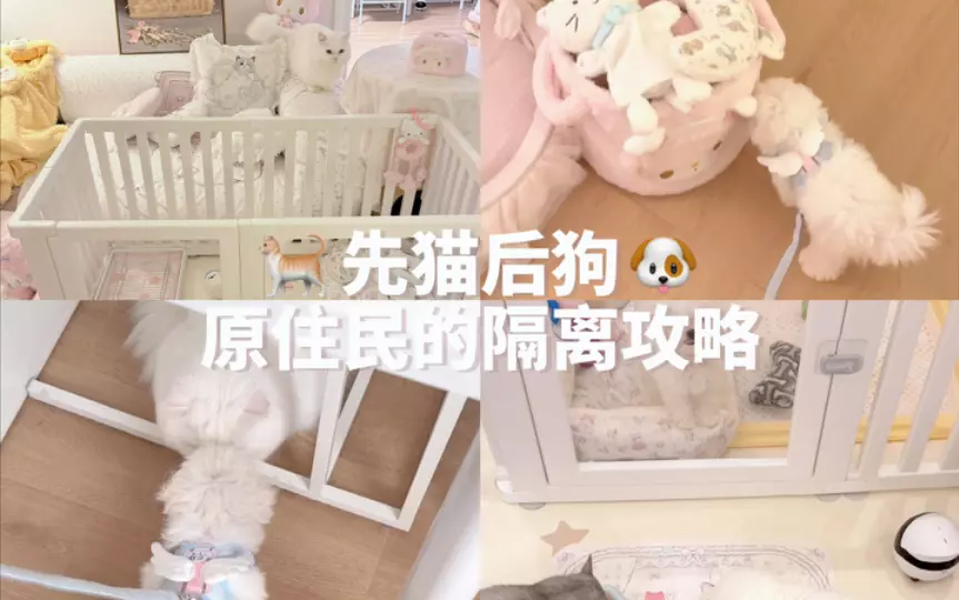 如果家里猫咪害怕就把隔离时间拉长,这期间刚好可以培养狗狗的行为习惯 🐶狗狗年龄小好奇心强又很热情,会更快适应,主要还是照顾家里原住民的情绪为主哦 🐱如果新成…