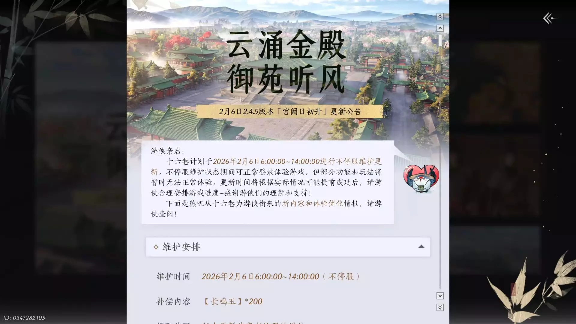 燕云2月6号更新公告速看(皇宫两个侠迹两个野外首领,不见山主线后两天更新,十人本后天更新233)