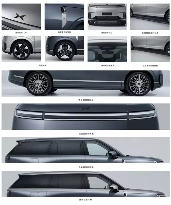 快科技2月7日消息,小鹏即将推出一款大六座的SUV,命名为小鹏GX,该车已经在工信部亮相,同时官方也发布了该车的图片,预计上半年上市。GX提供增程和纯电两种版本,设计基本保持一致,车头整体设计简约,采用分体式车灯设计,上部为分段式日行灯,下部两侧则是双竖置灯组,前包围还有主动进气格栅,前盖采用蚌型设计。该车长宽高分别为5265/1999/1800mm,轴距为3115mm,定位全尺寸SUV,内部采用六座布局,号称座座皆C位、排排能躺平。整车采用长轴距、长后悬、悬浮式车顶的设计,还搭配了金色的装饰,更显高级感,但不得不说,乍看之下确实很有路虎揽胜的风采,这可能就是好设计心有灵犀的具象化表达吧。该车将配备线控转向,支持后轮转向,除了提供21英寸轮毂外,还支持选装多辐条22英寸轮毂+前后鸳鸯胎。动力方面,GX标配双电机智能四驱,系统最大功率430kW(585Ps),峰值扭矩695N·m,零百加速4秒级,采用800V平台+5C 超充AI电池,预计售价围绕40万元展开。