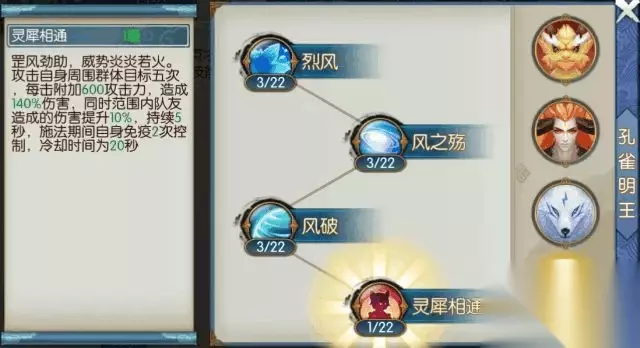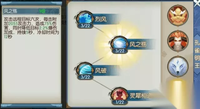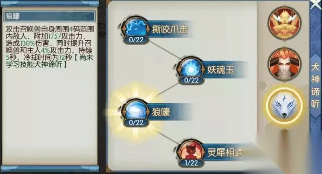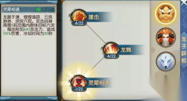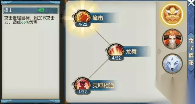 三系大招可分别召唤三种不同的召唤兽,其中赤炎金猊、犬神谛听为近程攻击,孔雀明王为远程攻击。 龙子辟邪