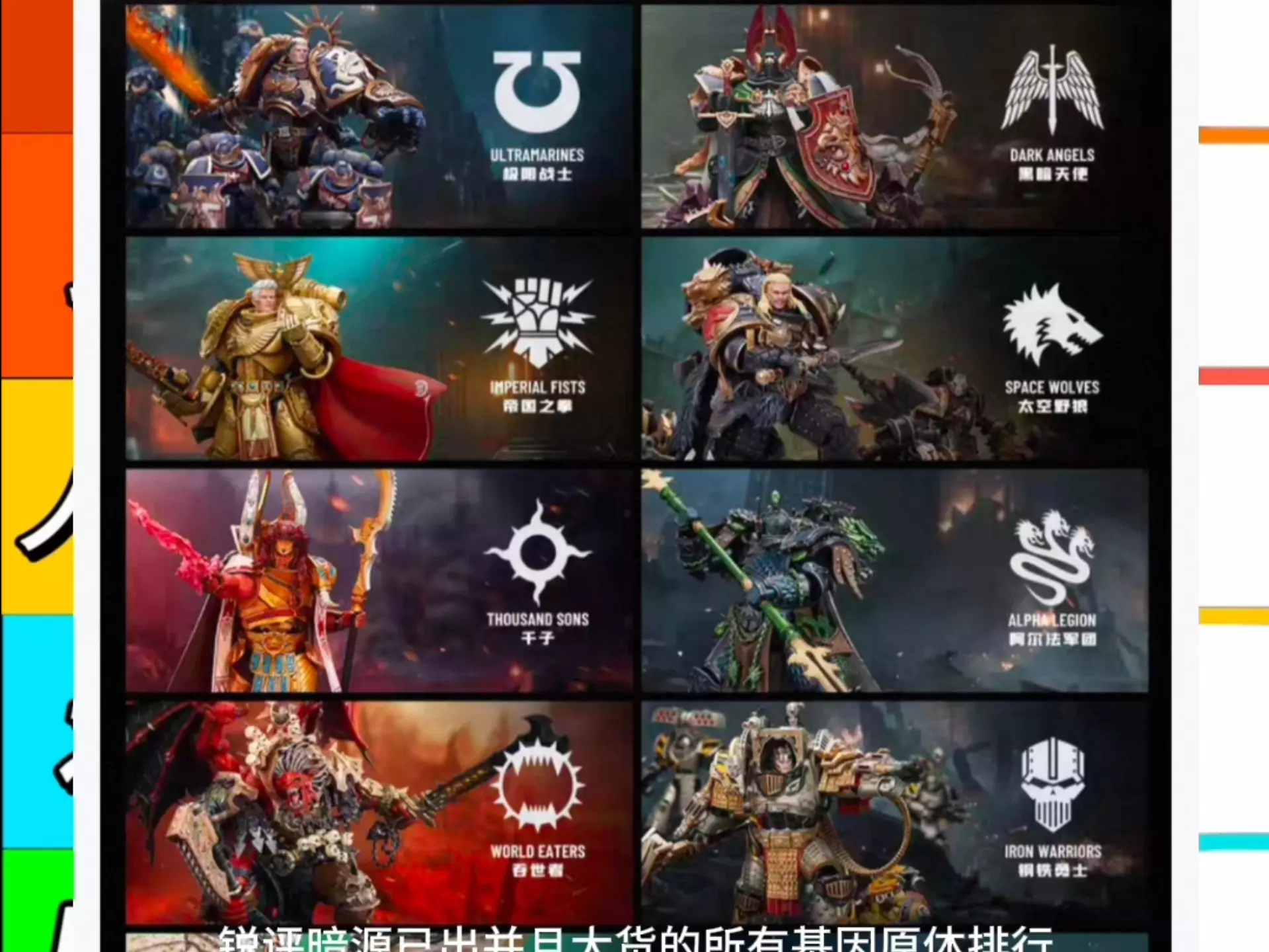 本文带来战锤40K相关内容,一次性展示介绍战锤40K中21个星际战士军团的基因原体,带爱好者一同了解战锤40K星际战士军团相关背景设定。