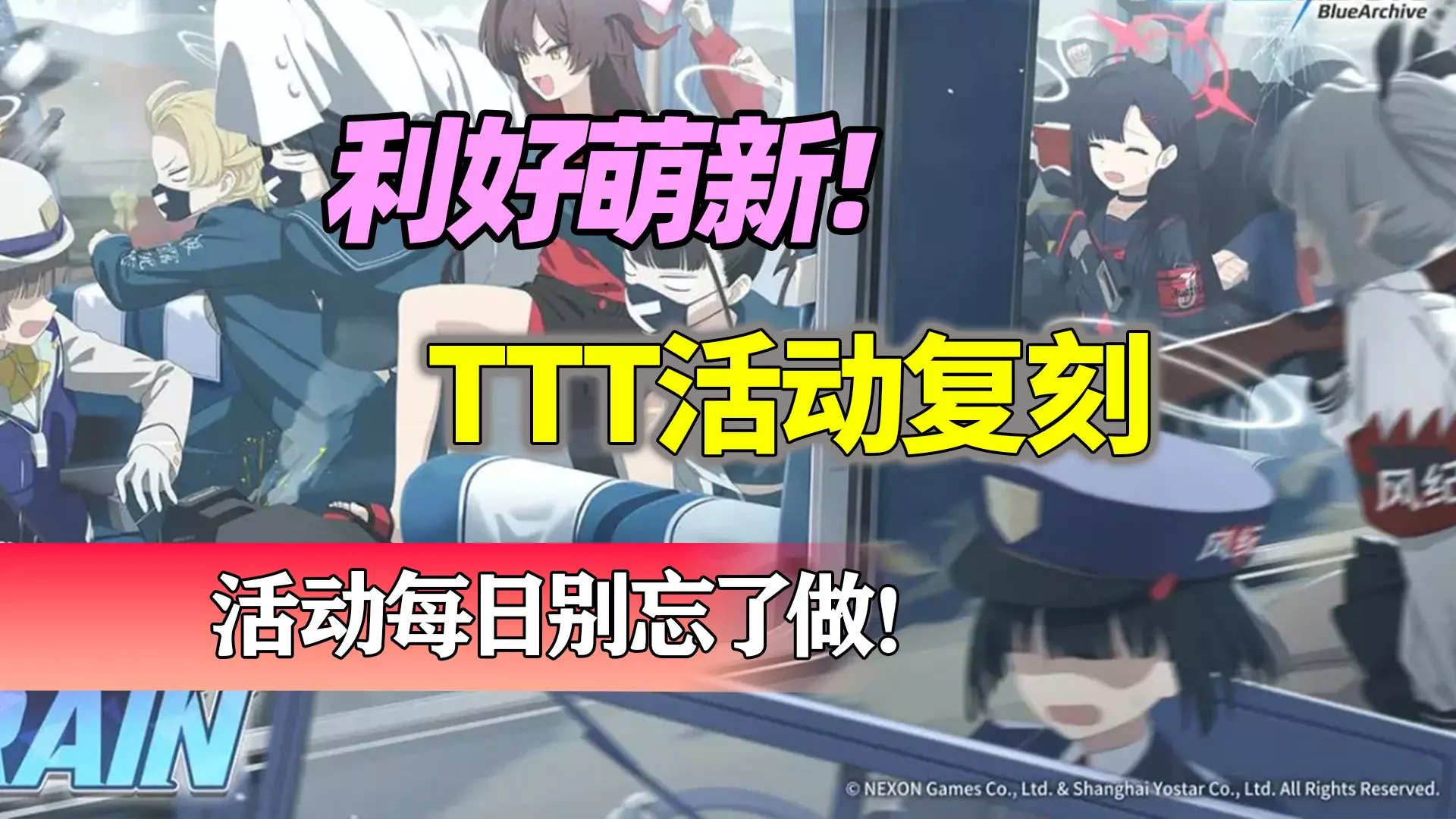 这是《蔚蓝档案》TTT复刻活动的挑战关卡合集内容,展示了活动中角色招募方式,还有挑战关卡的编队搭配,包含爱露、泳装花子等角色的编队方案,助力玩家完成活动挑战。