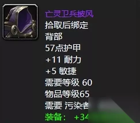当然如果你有一个好点的副手的话,那么喵叔我想你也可以选择这款同样污染者声望崇拜奖励的心灵之牙,不过话是那么说没错,但是喵叔我想百分之九十九的玩家会毫不犹豫的选铁皮法杖吧! 三:亡灵卫兵披风