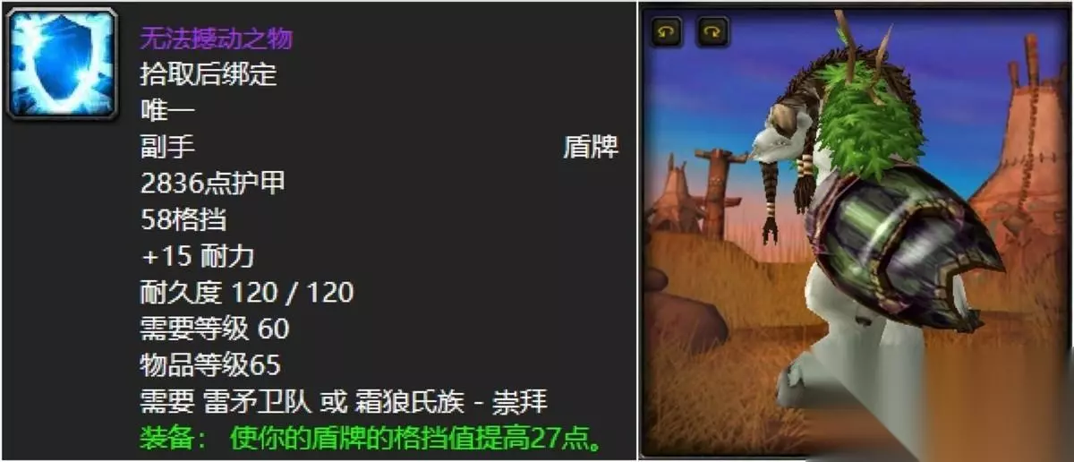 当然为了装备的同时,其实刷声望还有一大部分原因是为了这头霜狼嗥叫者,比起联盟的那山羊喵叔个人是觉得帅气多了的啊。骑着它感觉冲锋陷阵都嗷嗷大叫起来,根本停不下来,冲啊,兄弟们,为了部落! 七:无法撼动之物