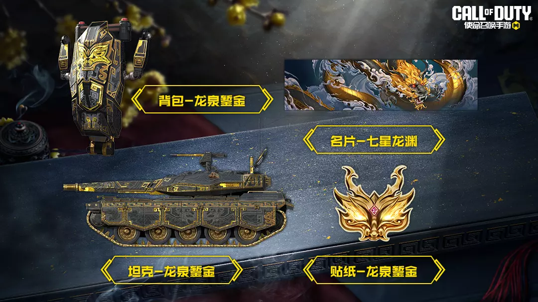 在七星龙渊活动中,还有背包-龙泉錾金、坦克-龙泉錾金、名片-七星龙渊、贴纸-龙泉錾金等精美奖励,等待与战士们共同奔赴战场!