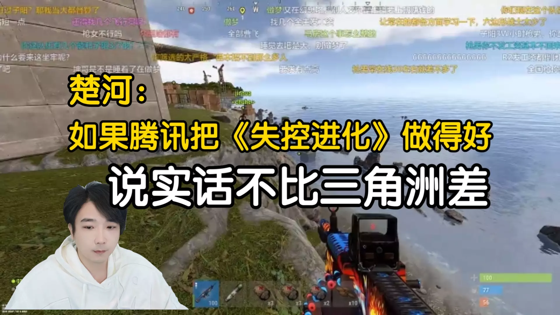 这是一则搞笑游戏分享,博主在生存射击游戏《失控进化》中招惹了全服玩家,引发了全服玩家前来对抗的有趣场面,该游戏直播直播间人数破50时还会发放游戏资格。