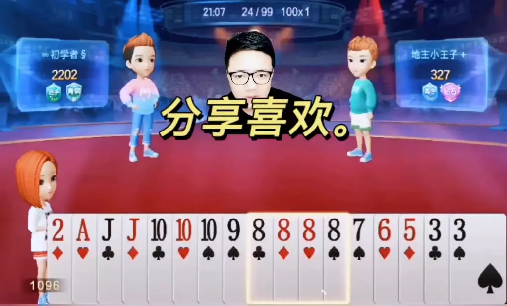 三岁玩牌破釜沉舟四个3的大胆一炸后期残局细腻的行牌为自己争取到了胜利!