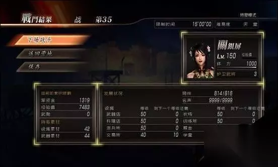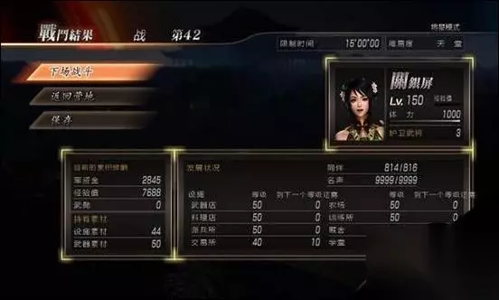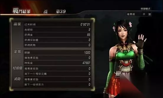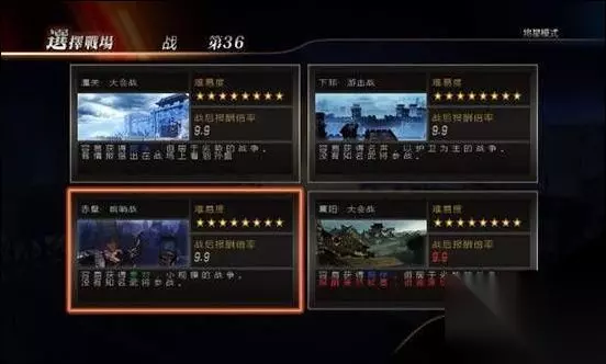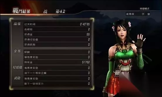 可以看得出来,每一关打两名旅长,以前我玩将星模式的时候都是骑着DLC的那匹赤兔,一遇到杂兵就下马储无双觉醒然后靠打一百杂兵和将领来拿时间,这样一来不但繁琐、浪费时间,而且还非常麻烦。但是只要每次任务的时候第一时间打开菜单,观看所有将领的位置,在心里大概模拟出一个路线,在打守关的将领之前把路线设计好,那么每关只需要打两名将领就过关了!时间不到一分钟!如图所示!