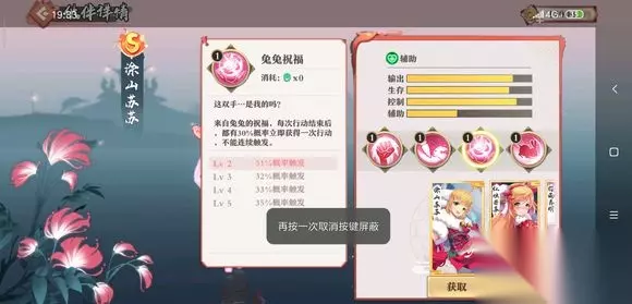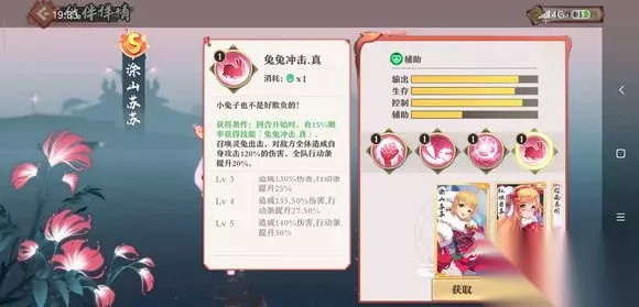 狐妖小红娘手游伙伴涂山苏苏介绍技能:兔兔冲击技能消耗:3技能分析:群伤加拉条技能,提升全体的行动速度;