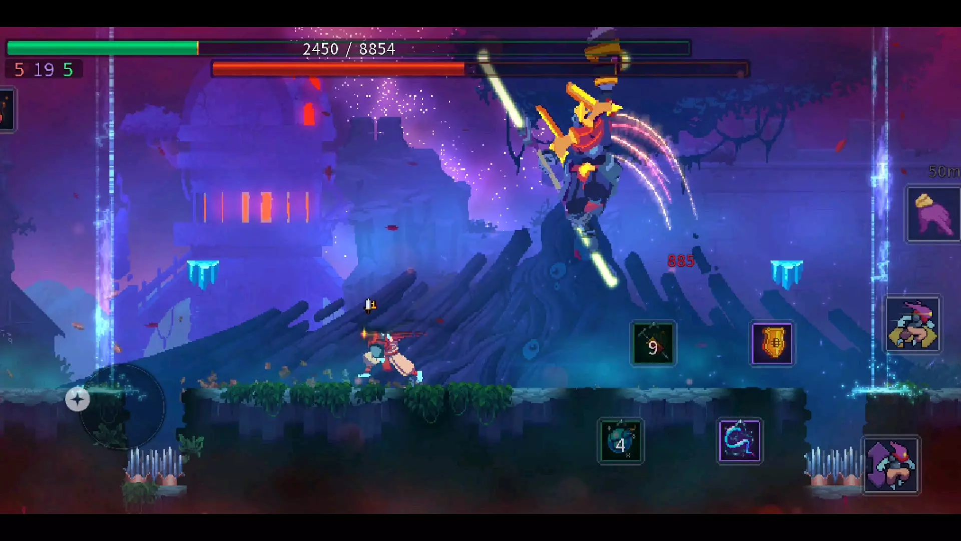 这是单机游戏《死亡细胞》(又名《肘击细胞》)的游戏内容分享,展示了玩家在“王座之间”场景的战斗画面,呈现了角色战斗、场景加载等游戏过程,《死亡细胞》是一款高难度的横版动作单机游戏。