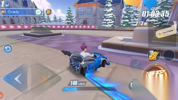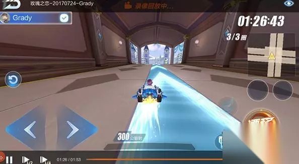 当我们顺利过了第一个U型弯道,上一个坡后,在平台上会有一段蓝色的加速带。这个加速带很关键,这是一个可以拉开与对手距离的点,要是不踩加速带的话,就很容易被拉开距离,最后不能获得一个理想的名次。