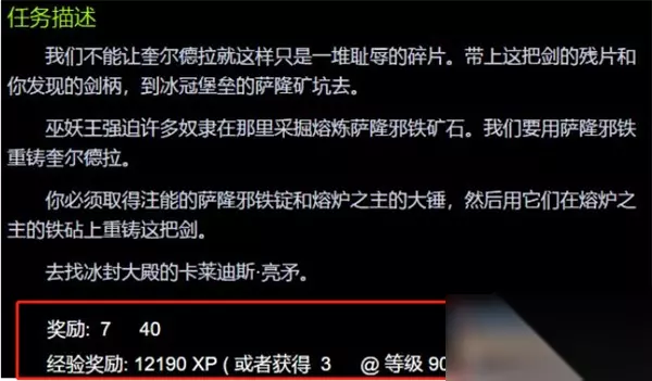 3、我们带着5块灌能的萨钢锭和熔炉之主的巨锤前往熔炉地方,使用任务物品即可进行锻造利剑。 4、最后再将重铸的利剑交给任务对应的npc即可完成任务(在副本的门口位置),并获得任务奖励。