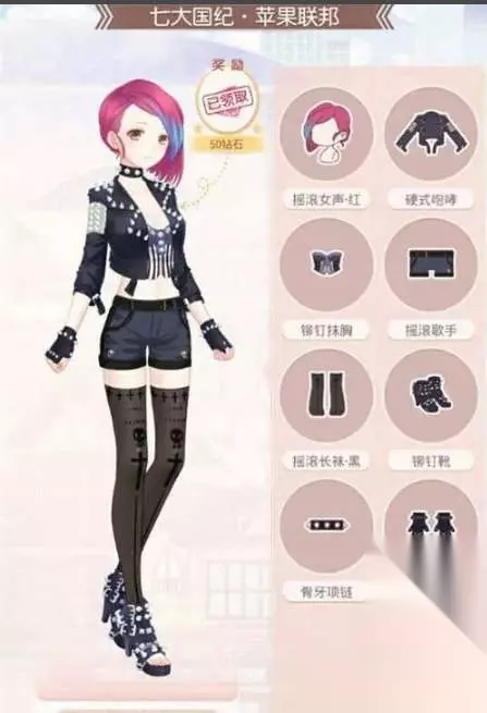 头发:摇滚女声·红(服装店花4921金币购买获得) 外套:硬式咆哮(设计图制作,服装店购买3个3170金币的个性少女头发+服装店花5722购买风情·白定制而成2件风情·黑) 上衣:铆钉抹胸(设计图制作,至少过3次1-8获得3件全棉上衣·褐+至少过3次1-9获得3件运动服·绿) 下装:摇滚歌手(设计图制作,服装店购买4件2961金币的电视机裤子+至少过2次2-3获得2件冰雪战士) 袜子:摇滚长袜·黑(服装店购花9800购买摇滚长袜·蓝搞定定制成摇滚长袜·黑) 鞋子:铆钉靴(服装店花15489金币购买获得) 饰品:骨牙项链(至少S过1次3-2获得项链) 铆钉手套:(服装店花费2345金币购买获得) 虚空歌者第五关: