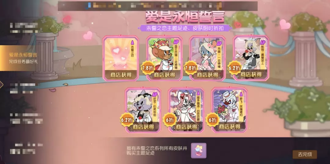 2月12日—2月22日,未誓之恋主题足迹、皮肤限时折扣,喜欢的小伙伴不要错过~活动期间,完成任务还可获得亲密礼物告白气球!