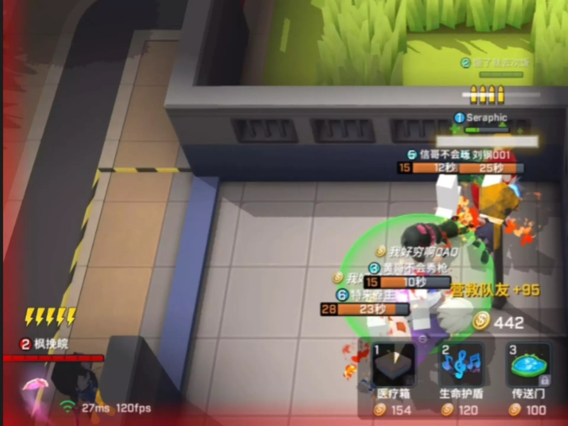 这是逃跑吧少年游戏中FPS棉刀玩法的实战对局画面,展示了玩家操控角色持刀战斗、追击淘汰对手的对局过程,呈现了该玩法的实战操作场景。