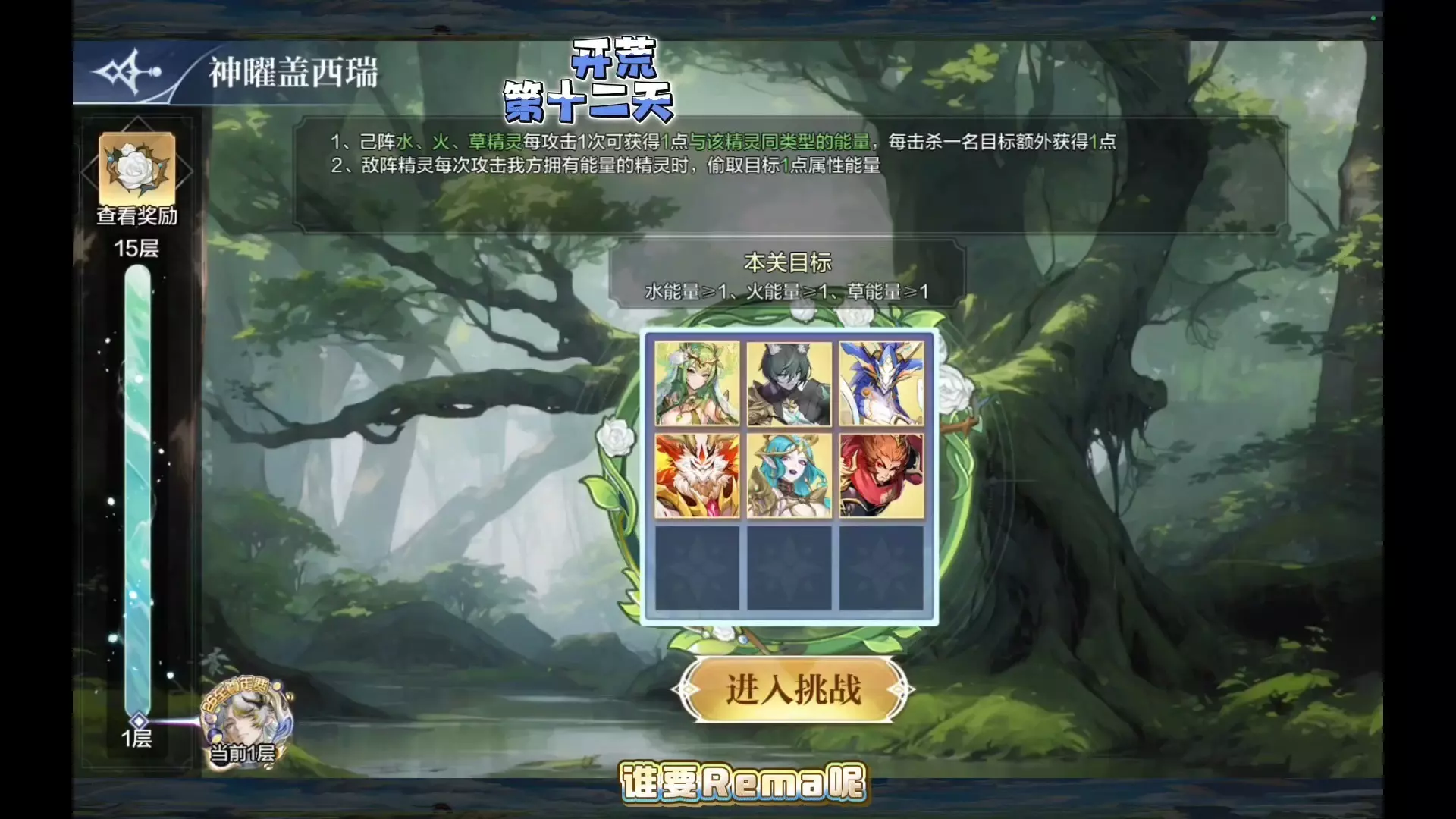 这是奥奇传说手游新手第一人称开荒第十一天的内容,展示了神曜烈心关卡的战斗布阵,还有红莲圣火玩法里的红莲道具使用,为新手开荒该关卡提供参考。