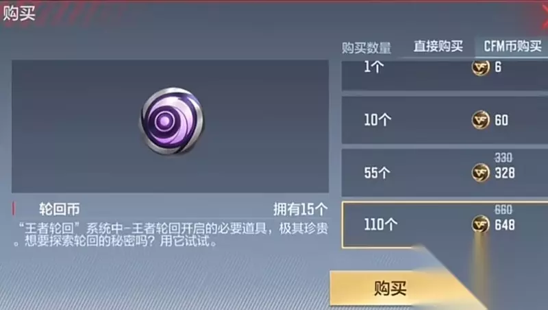 轮回币的获取方式主要是通过充值购买,1个轮回币的价格是10元人民币。这个价格会根据每次活动的具体规则有所浮动。
