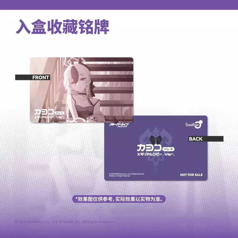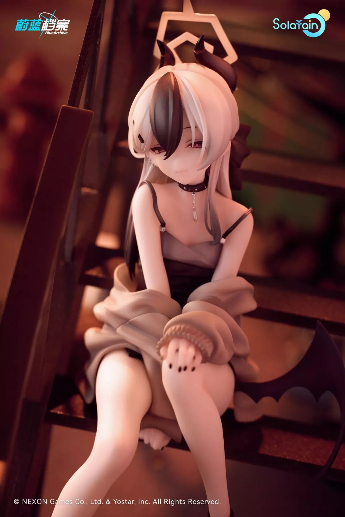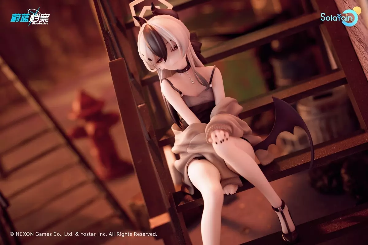 Solarain呈现,热门游戏《蔚蓝档案》中便利屋68的课长「佳代子」,以活动礼服形象1/7手办化登场!手办造型还原佳代子以黑色蝴蝶结挽于颈后的黑白色长发,搭配吊带式黑灰礼服,简约剪裁与她独特的气质相得益彰。特别设计楼梯场景地台,细腻重现纪念大厅中她与老师在夕阳下独处的静谧时光。佳代子双腿交叠立于阶梯,一手轻搭膝上,一手自然扶梯,针织外套随意垂落,标志性的单片恶魔翅膀流转淡淡的紫光。她微眯双眼,神情如猫般慵懒地望向老师,仿佛正沉浸在这份专属的宁静氛围中。无论是锁骨处的浅痣、流露着成熟感的耳钉与铆钉项链,还是指尖的黑色美甲,每一处细节都精心雕琢,尽显佳代子的独特魅力。此外,手办额外附赠“微笑脸”,捕捉了佳代子仅对老师展露的温柔笑颜,令人不禁心动。不妨将这份独属于你的温柔珍藏,带回家细细品味吧♪特典:全数封入「佳代子(礼服)纪念大厅版」收藏铭牌